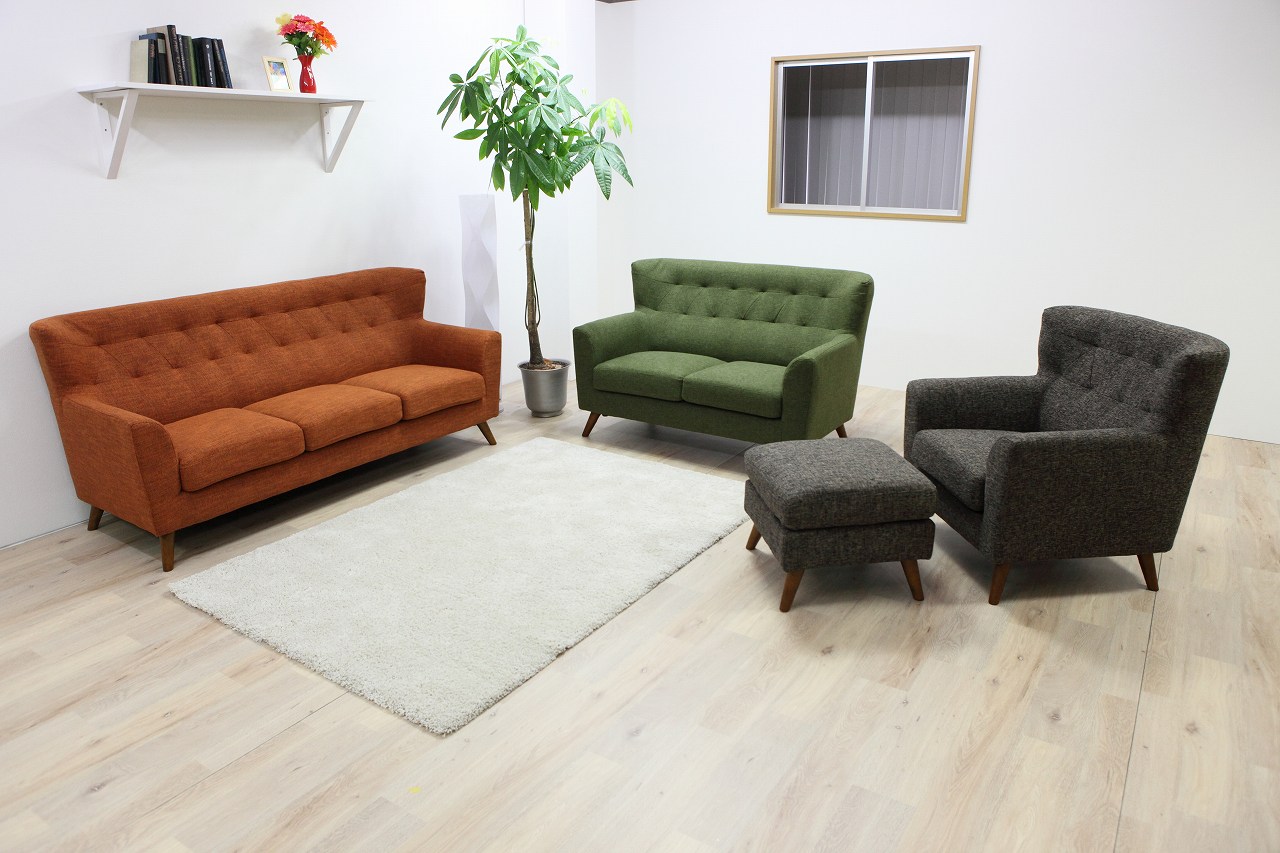ソファ 1人掛け・2人掛け・3人掛け・スツール ロマーナ オレンジ・グリーン・ブラウン