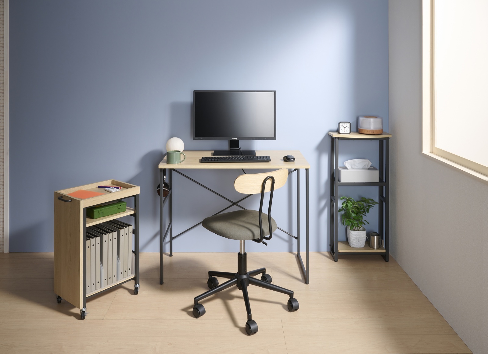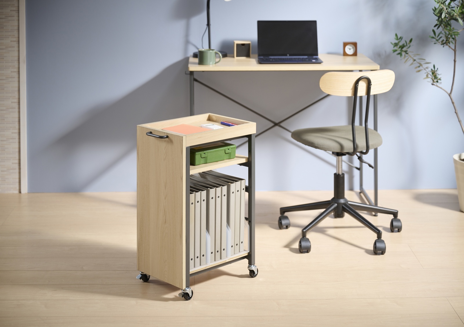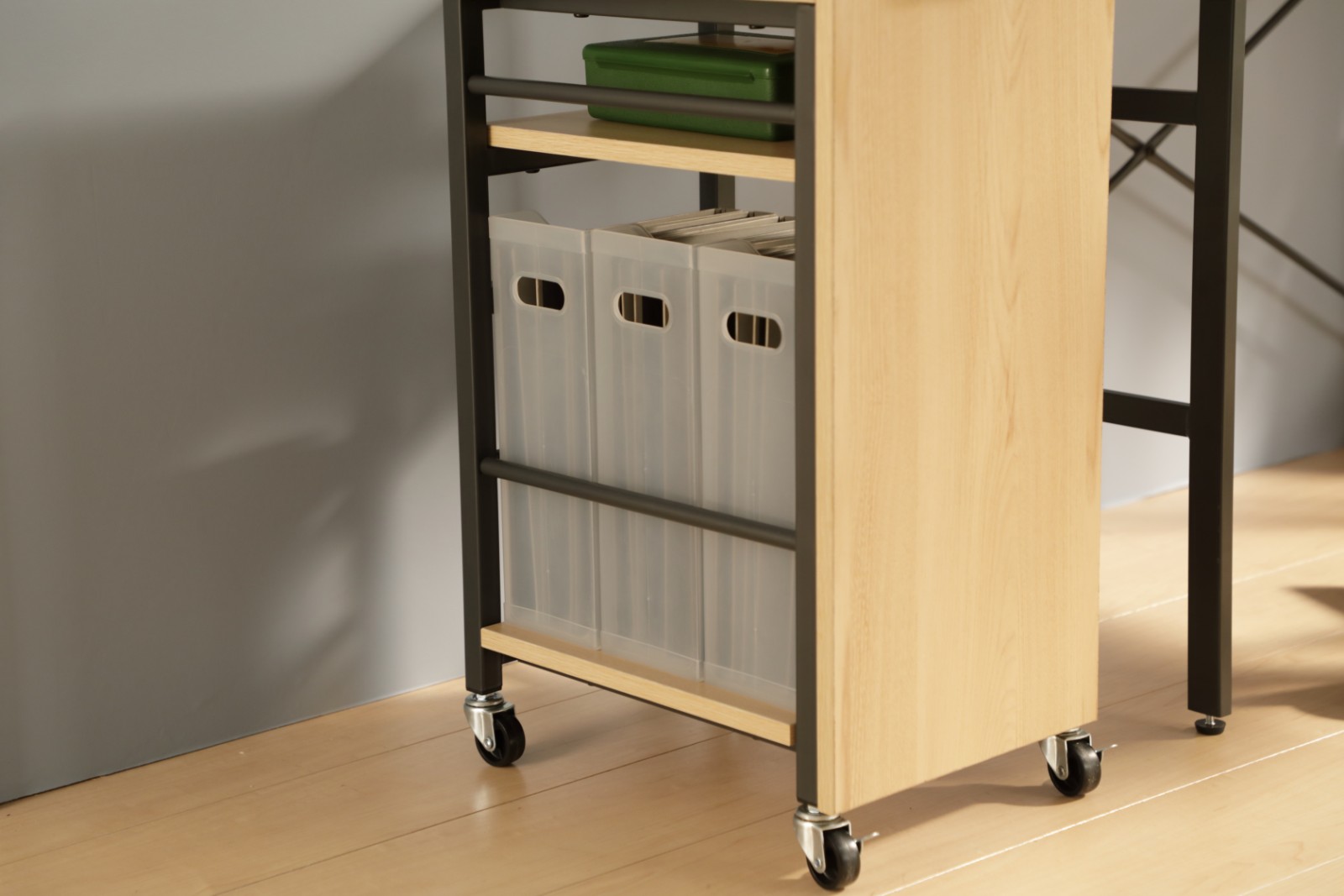 デスク周りを快適に整えるワゴン・ラック・コンソールの収納シリーズ。ワゴンとラックはキャスター付きで移動ラクラク。ラックはS字フック3個付きで飾り収納も楽しめます。コンソールはスリムで省スペース設置が可能。ナチュラル×ブラックの落ち着いたデザインで統一感のある空間をつくれます。