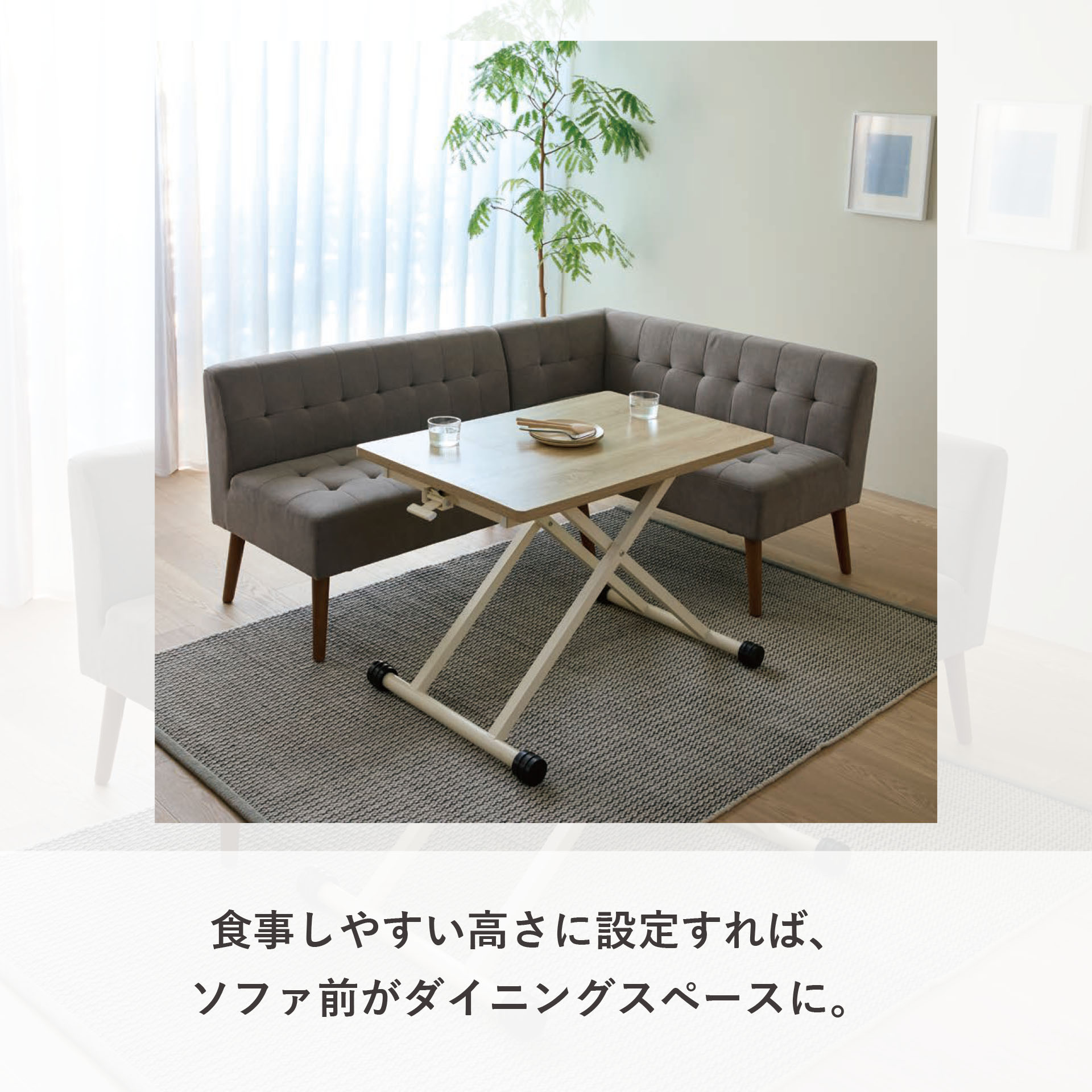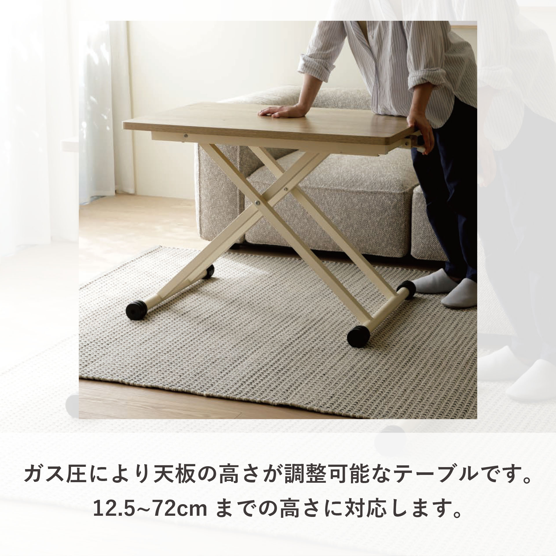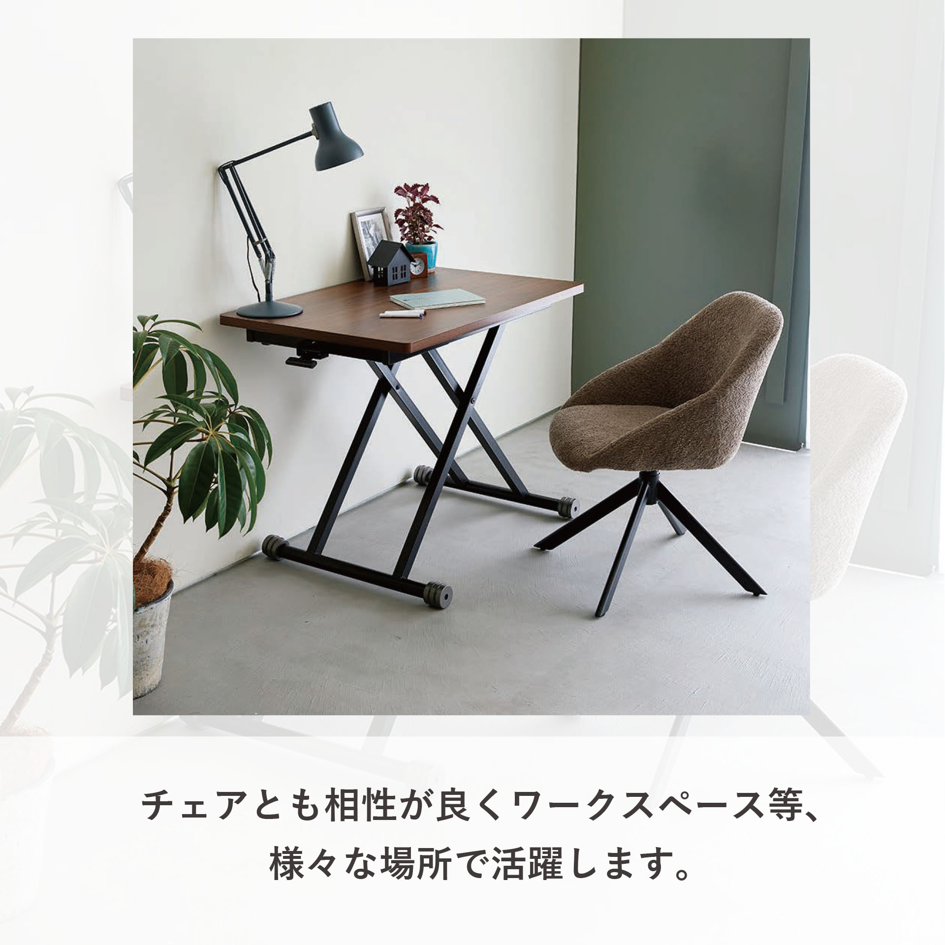 用途に合わせて高さを無段階で調整できる昇降式リフトテーブル。傷や汚れに強いメラミン化粧板天板を採用し、食事・作業・リラックスタイムまで幅広く活躍します。キャスター付きで移動も簡単。折りたたんで省スペース収納も可能。カラーはストーングレー・ブラウン・ナチュラルの3色展開。レビュー