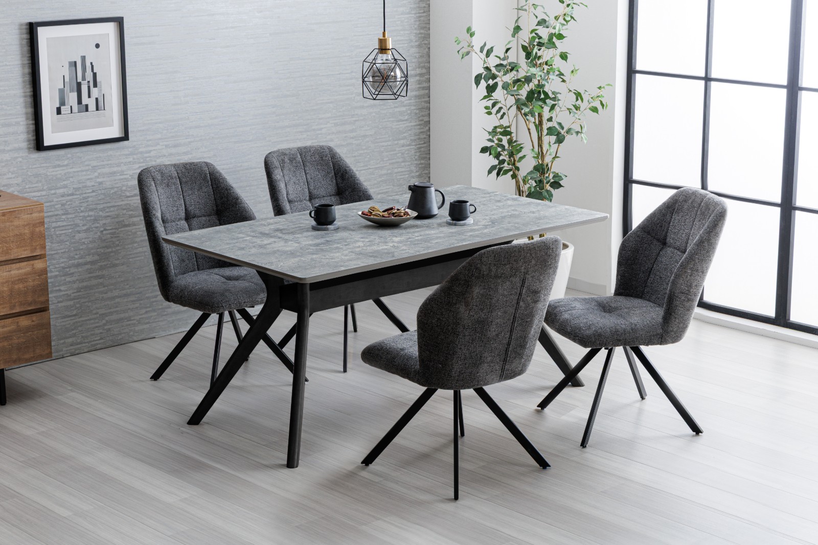 ファブリックのチェアは快適な座り心地。5点セットで税込¥88,000