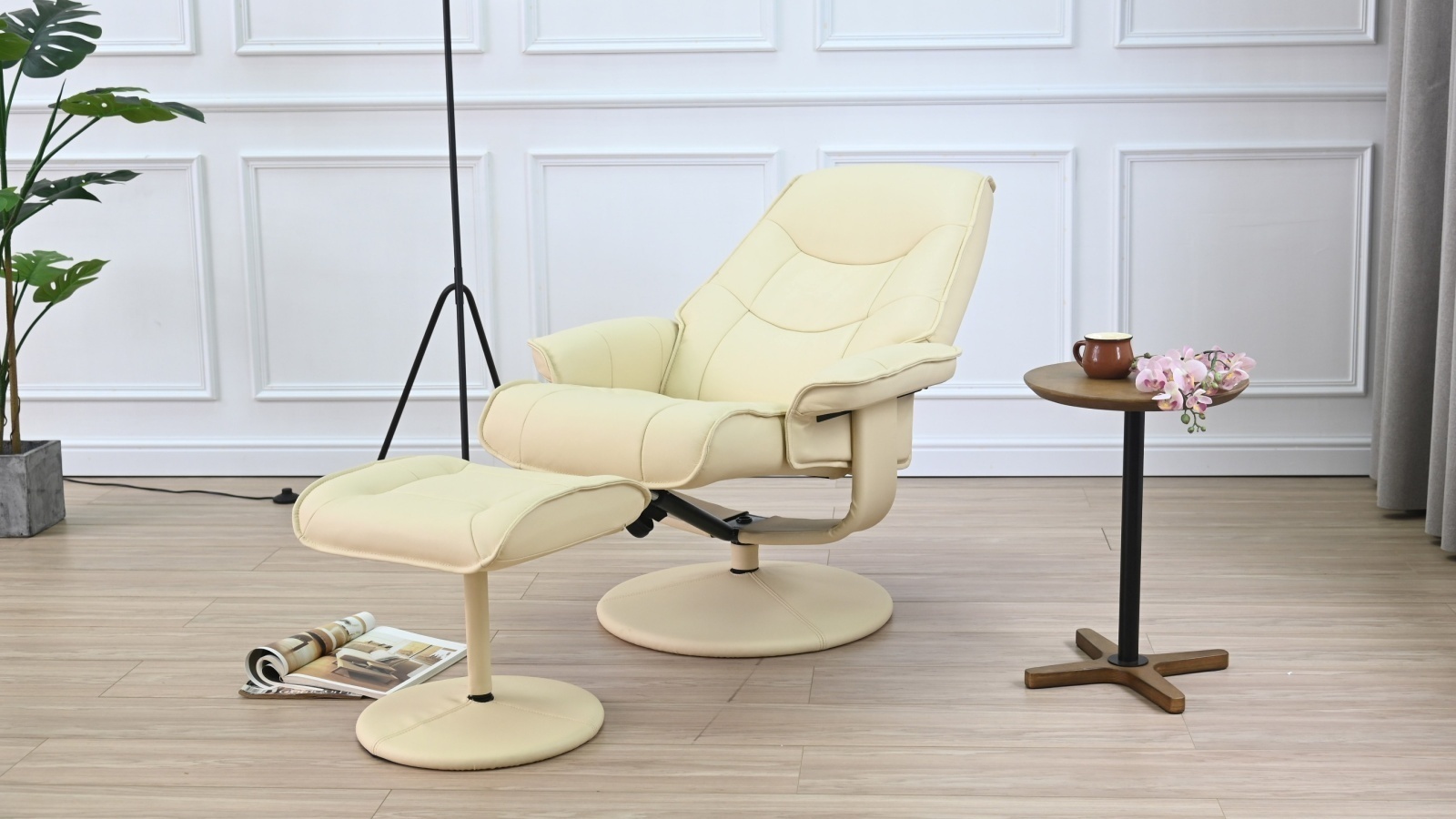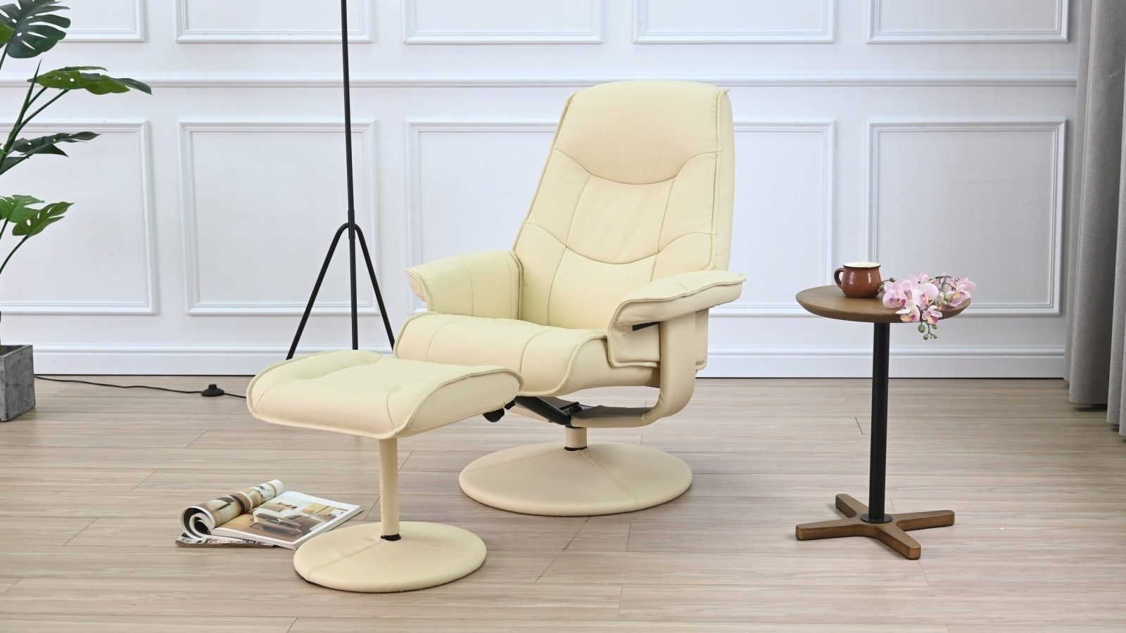 耐久性に優れたPVC素材を使用し、お手入れ簡単な「バサロIV」。6段階リクライニング機能とフットレスト付きで快適な座り心地を実現。シンプルなデザインはリビングや書斎など幅広い空間に調和し、日常のリラックスタイムをより豊かにします。