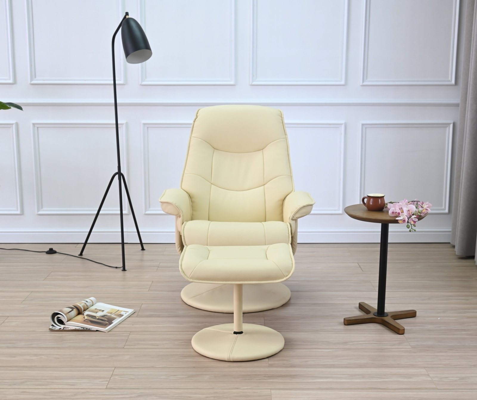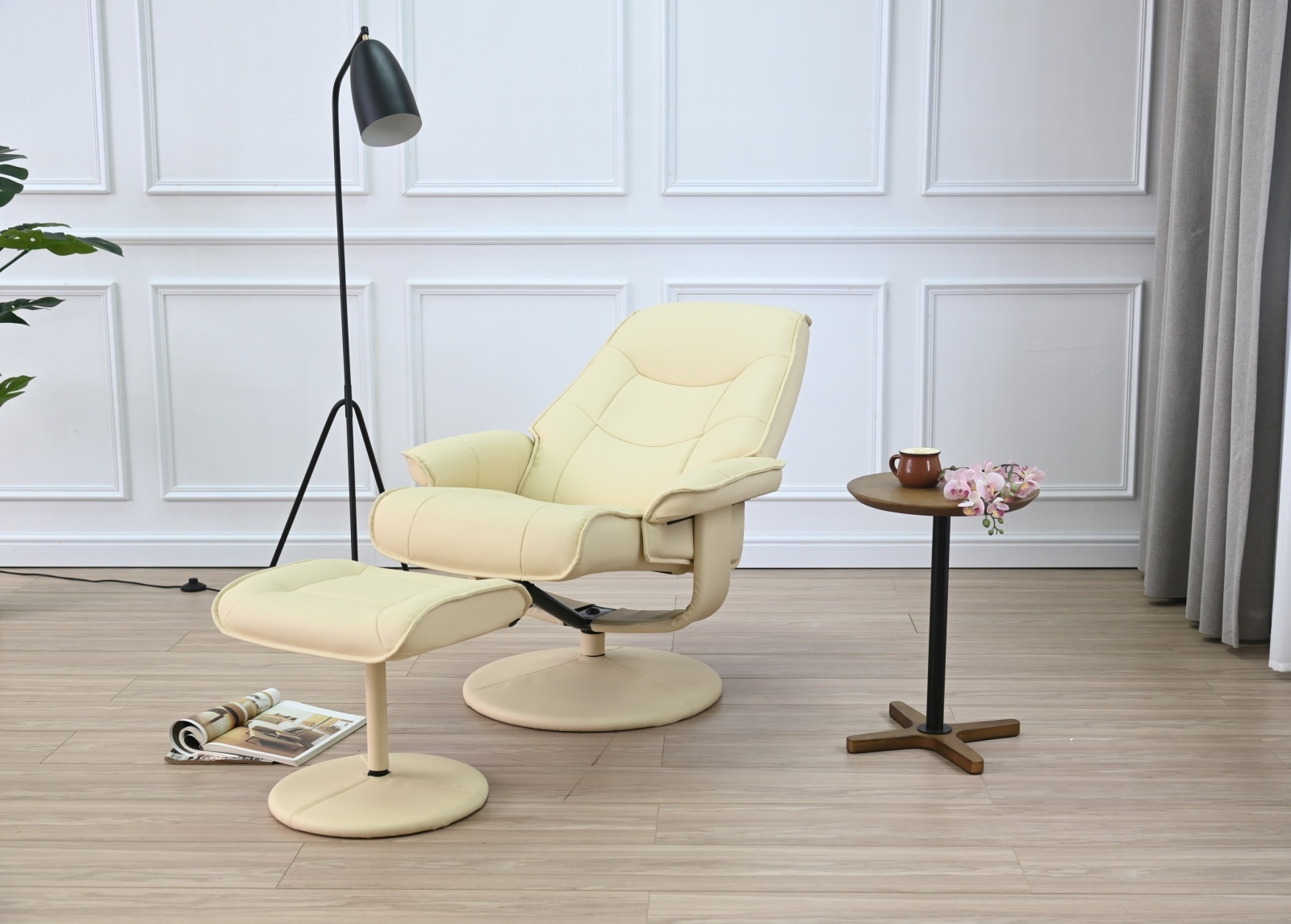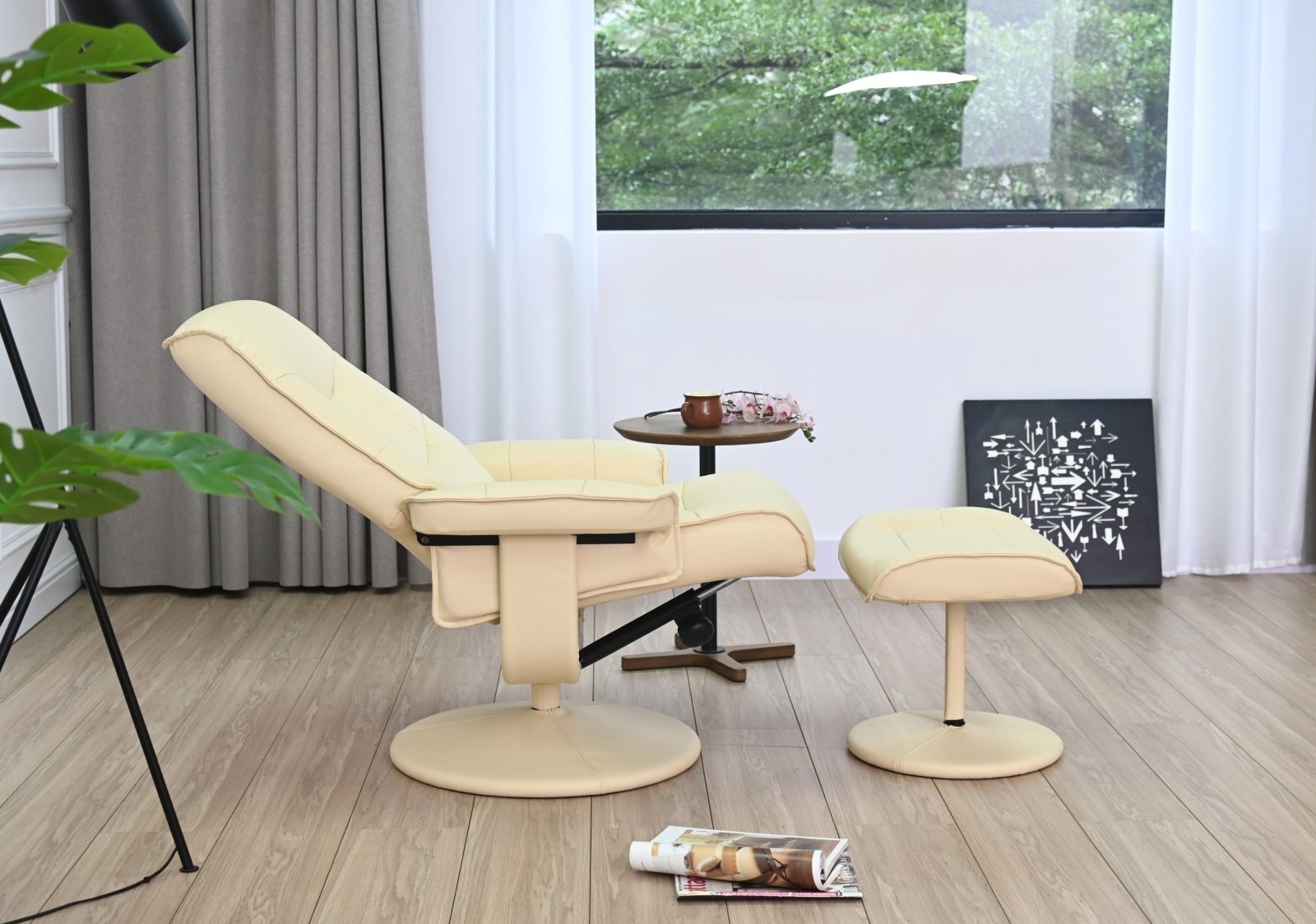 耐久性に優れたPVC素材を使用し、お手入れ簡単な「リーフIV」。リクライニング機能とオットマン付きで快適な座り心地を実現。シンプルなデザインはリビングや書斎など幅広い空間に調和し、日常のリラックスタイムをより豊かにします。