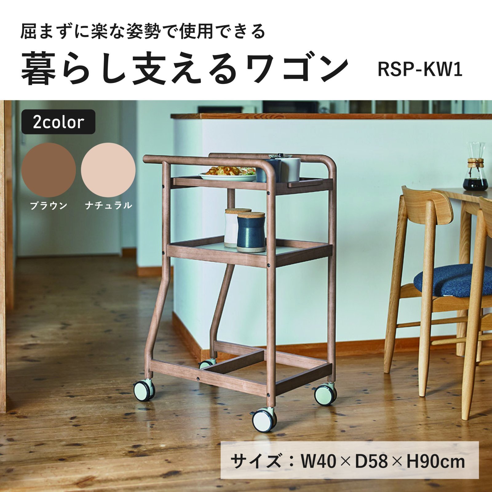 ワゴン キッチン 天然木 RSP-KW1 ブラウン ナチュナル