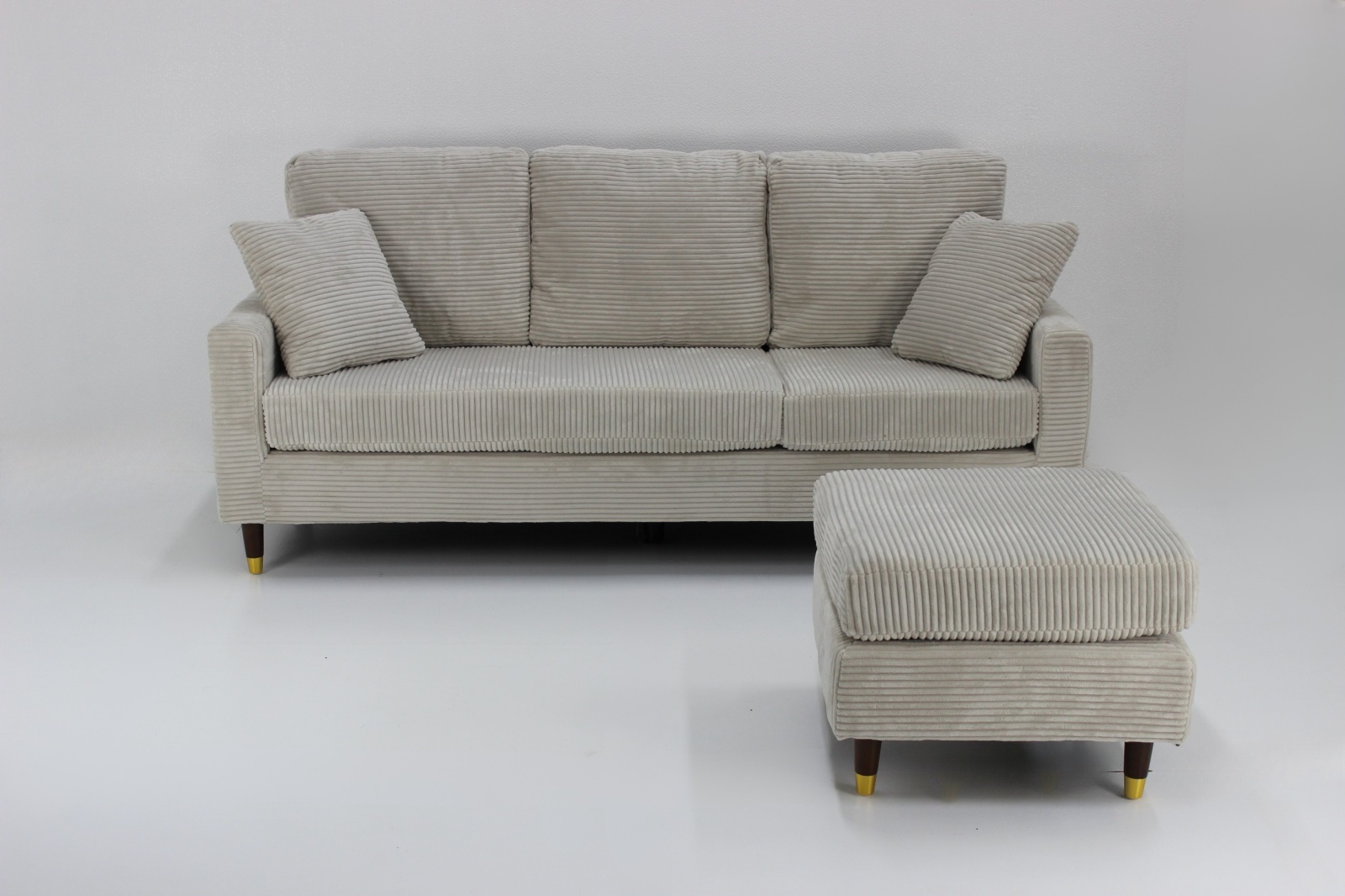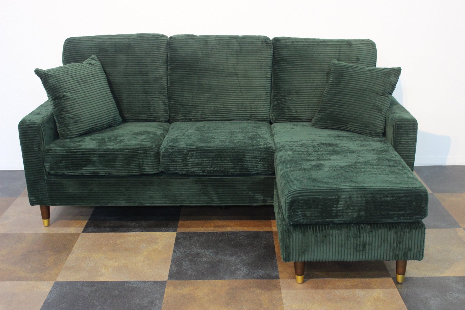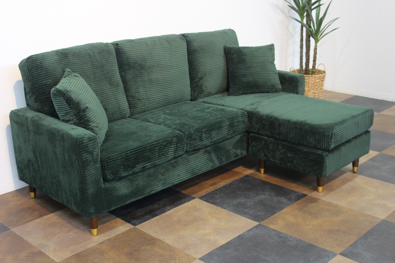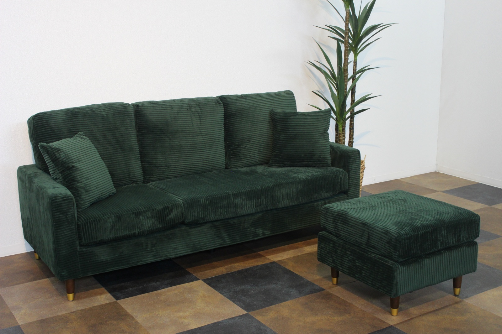 柔らかなコーデュロイ生地が魅力の「バロン」。座面はSバネ・ウレタンフォーム・ウェービングベルトを使用し、快適な弾力と安定感を実現。天然木の脚があたたかみを添え、ナチュラルな雰囲気に仕上げました。スツール付きでレイアウト自由自在。カラーはグリーン・ライトベージュの2色展開。