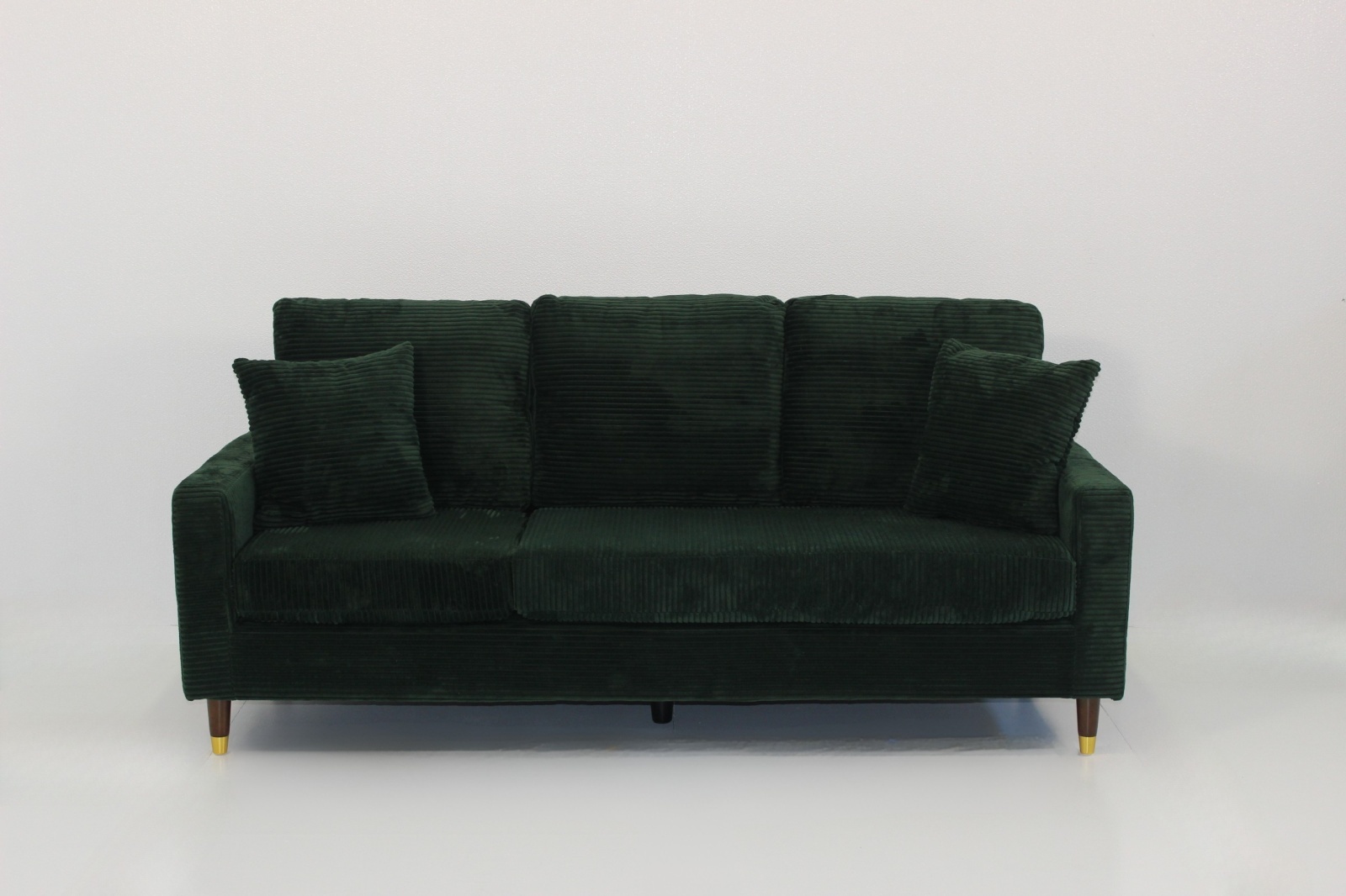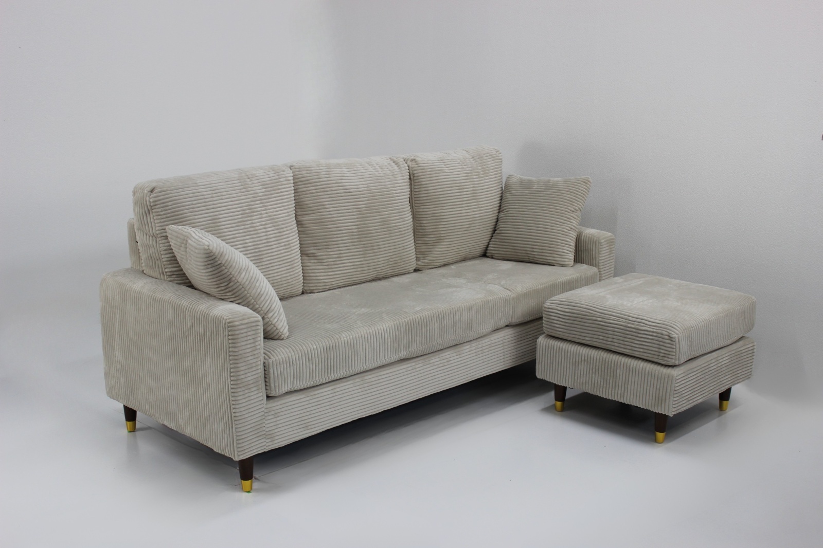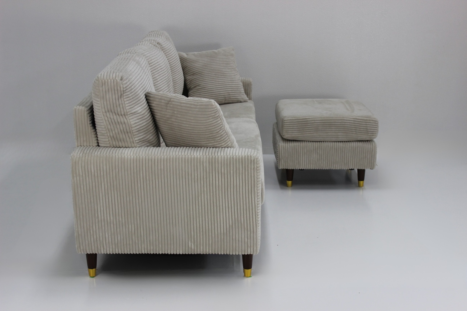 柔らかなコーデュロイ生地が魅力の「バロン」。座面はSバネ・ウレタンフォーム・ウェービングベルトを使用し、快適な弾力と安定感を実現。天然木の脚があたたかみを添え、ナチュラルな雰囲気に仕上げました。スツール付きでレイアウト自由自在。カラーはグリーン・ライトベージュの2色展開。