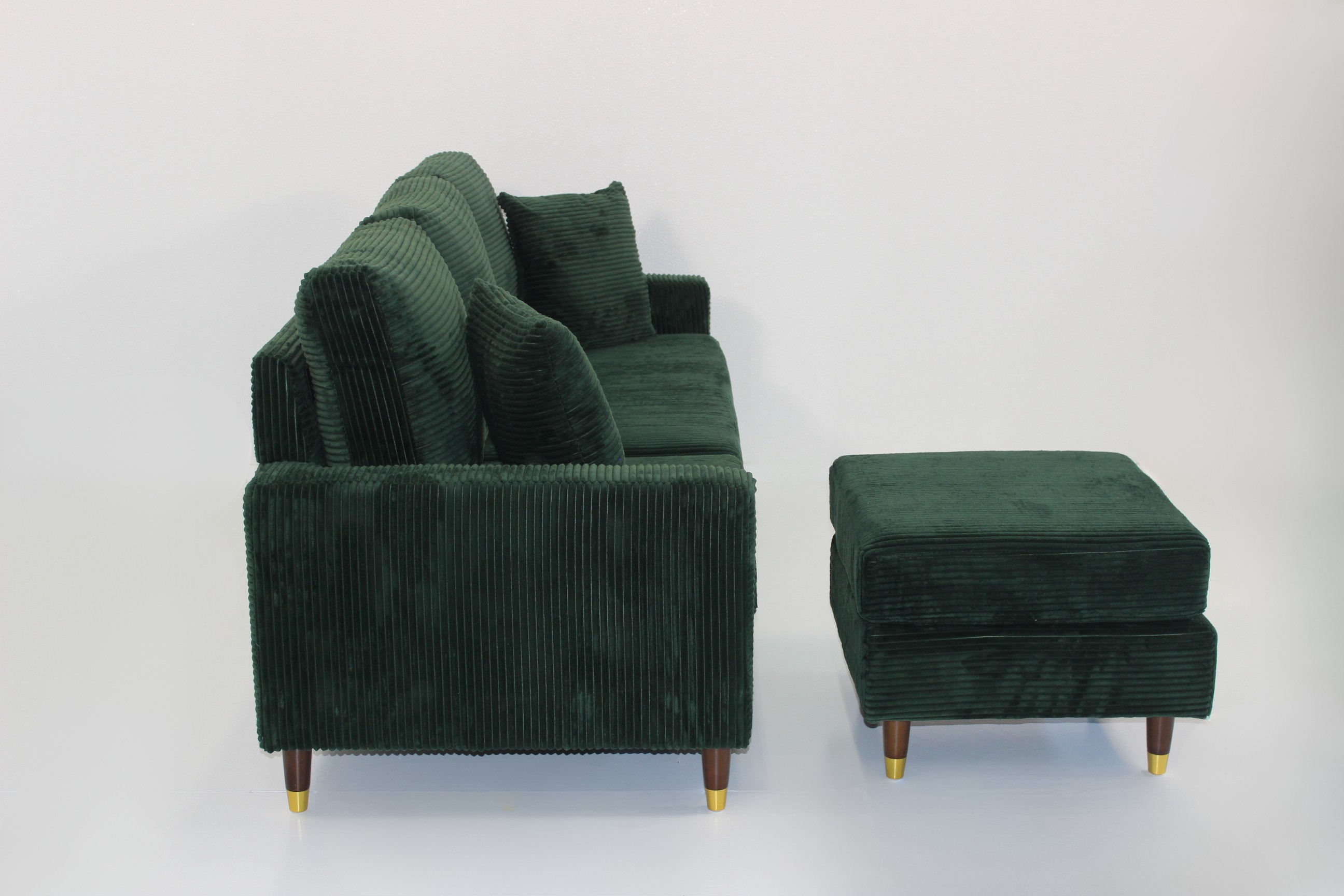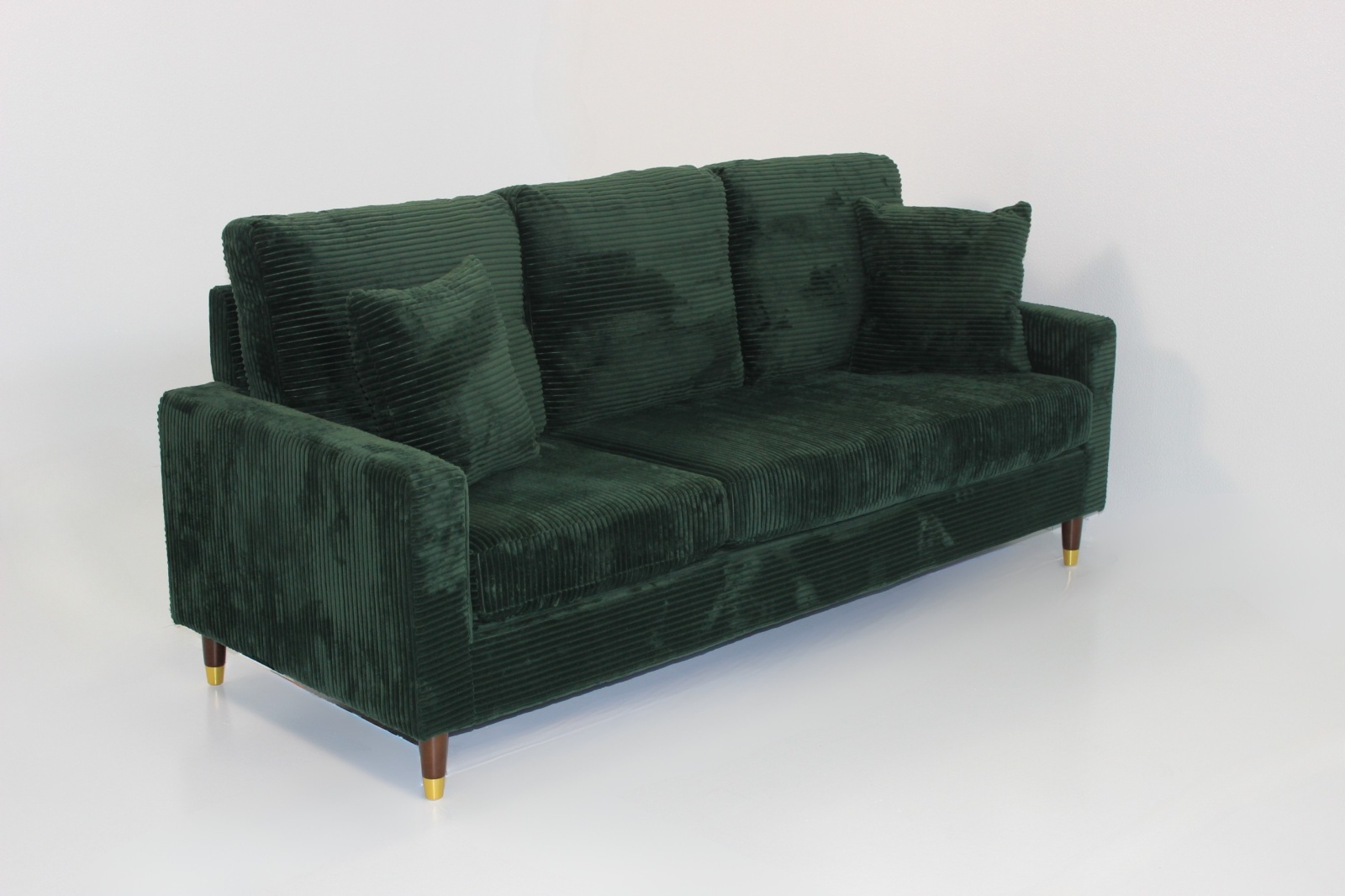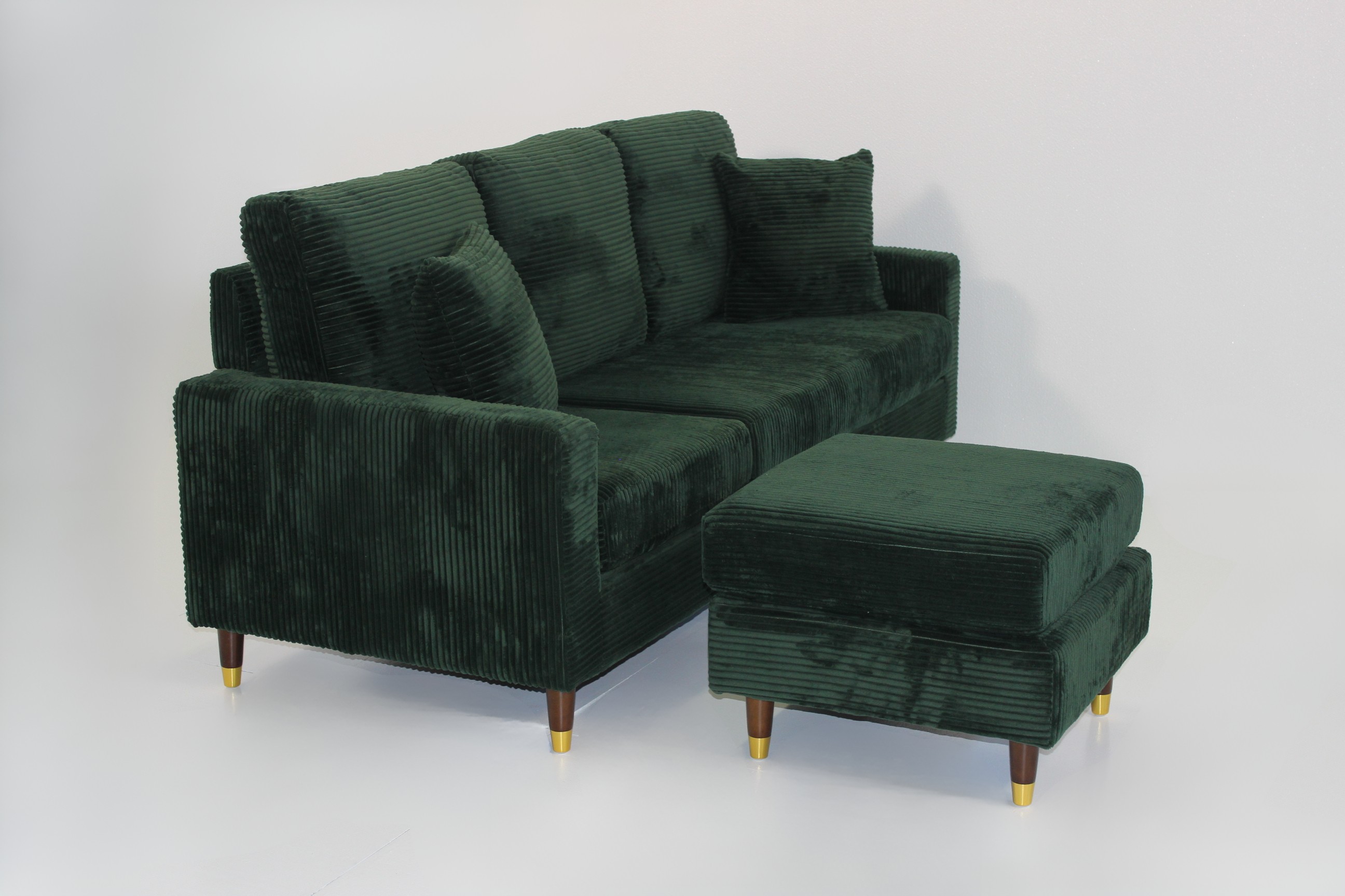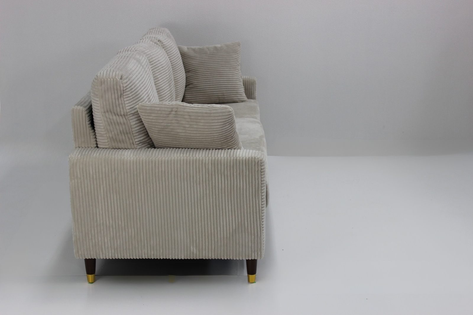 柔らかなコーデュロイ生地が魅力の「バロン」。座面はSバネ・ウレタンフォーム・ウェービングベルトを使用し、快適な弾力と安定感を実現。天然木の脚があたたかみを添え、ナチュラルな雰囲気に仕上げました。スツール付きでレイアウト自由自在。カラーはグリーン・ライトベージュの2色展開。