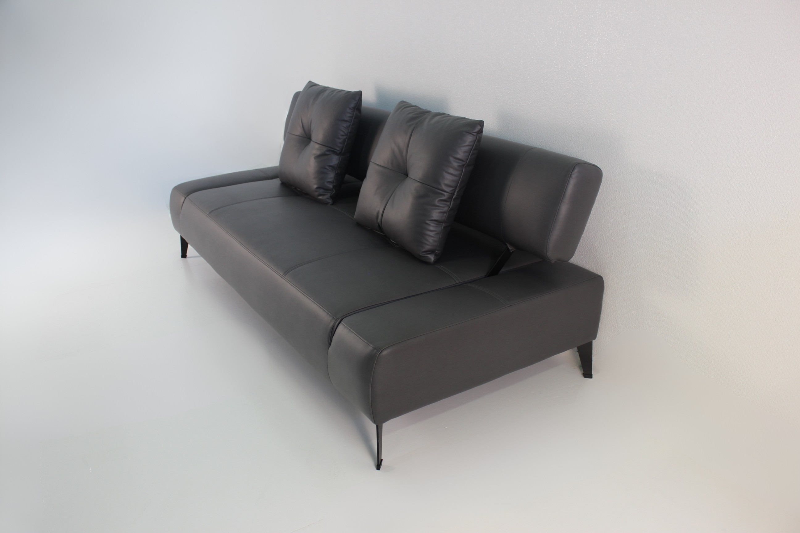 スタイリッシュで省スペースなノエルは、ソファからベッドに簡単変形可能。ファブリックレザーと金属脚の組み合わせで上質感を演出。Sバネ+ウレタンの構造により快適な座り心地と寝心地を実現。クッション2個付きでお得感も◎。カラーはDGY・GYの2色展開。大きめのクッション2個付きです。