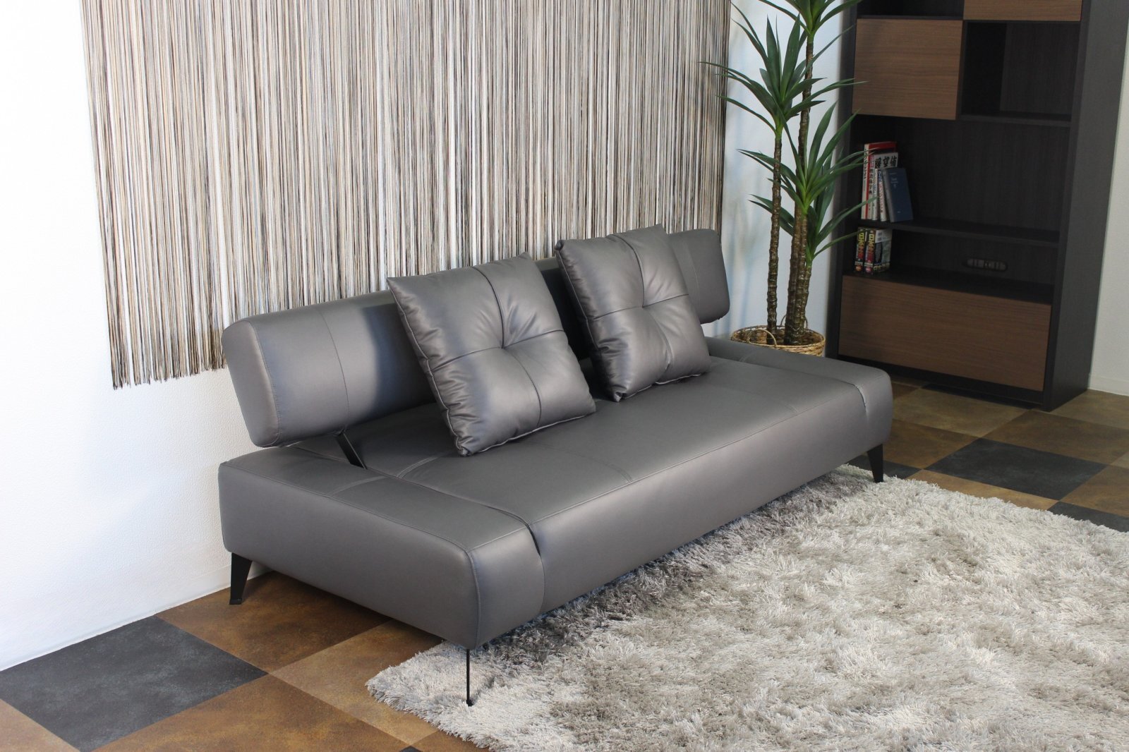 壁に付けて配置したまま背もたれを手前に倒すと広めのベットに早変わり!